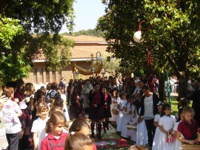 En muchos lugares se hacen alfombras con pétalos de flores para que las pise Jesús sacramentado.