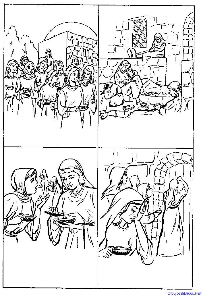 Sus damas de honor también estaban esperando y tenían que tener listo el aceite de sus lámparas.