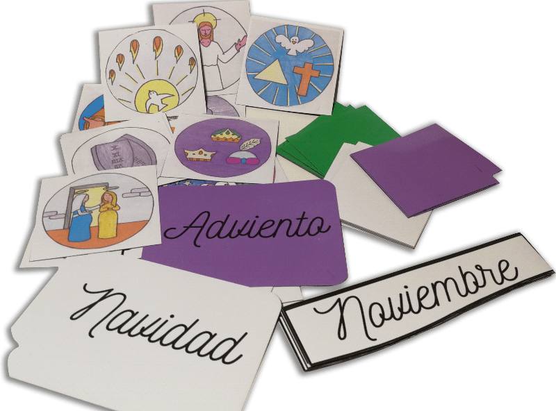 Iconos para cada etapa; acogida, conocer, orar y celebrar, despedida.